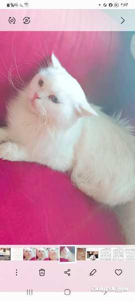 قطة شيراز ملكي للبيع أنثى بيضاء عينين ازرق وعسلي