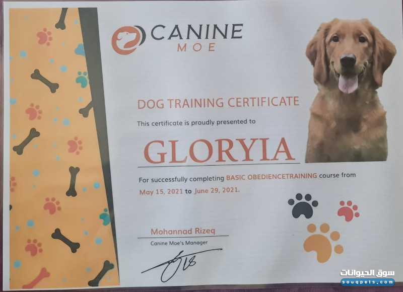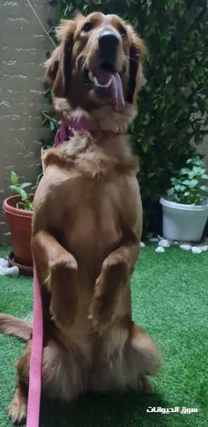 جولدن ريتريفر انثى لم يسبق لها الولادة مدربة بالكامل على اوامر الطاعة العمر سنة و 9 شهور تم اعطائها جميع التطعيمات
