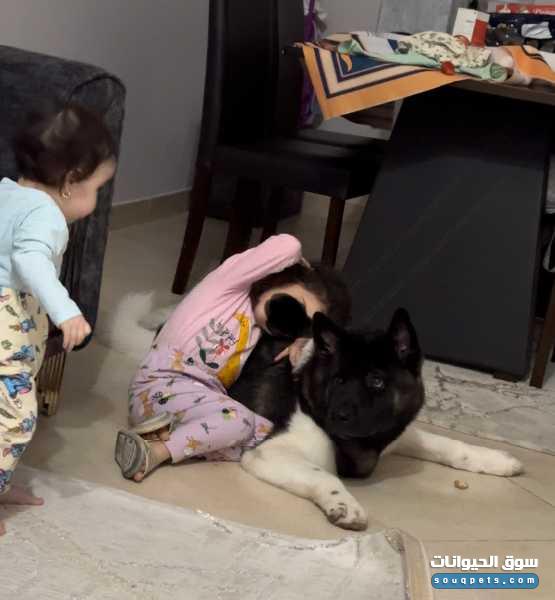 أكيتا امريكي 9 شهور مدرب طاعة مع تنشئة اجتماعية مع منزل خشبي مكيف هواء كامل بالملحقات والفيتامينات جيد جدا مع الأطفال والحيوانات