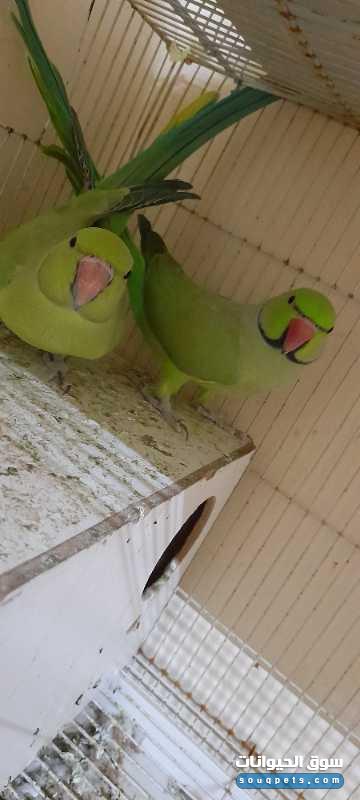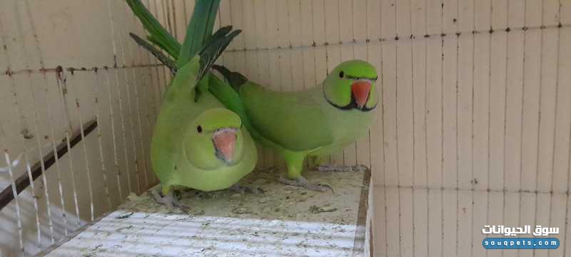 بيع زوجين من ببغاء الدرة الزوج الاول منتجين والثاني الذكر صغير في مرحلة تغيير الريش