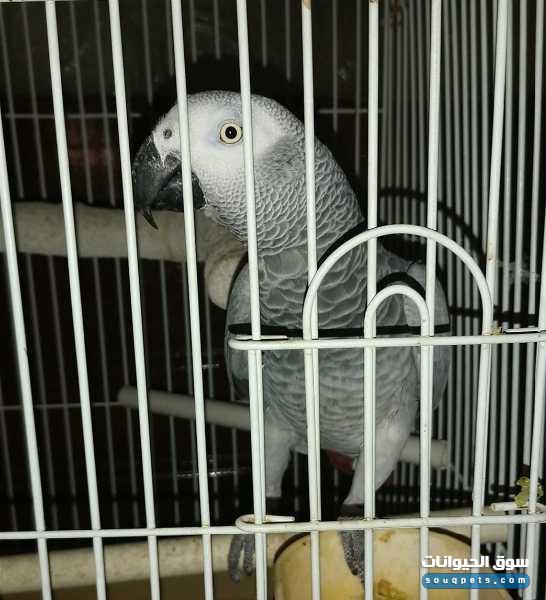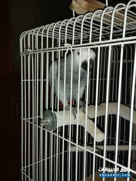 كاسكو أليف جدا يتحدث بصحه جيده للبيع مع القفص وثلاث أكياس من الحبوب المتنوعه
