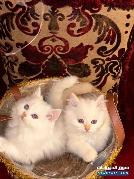 زوجان قطط سكوتش ذكر وأنثى عيون خضراء وزرقاء …