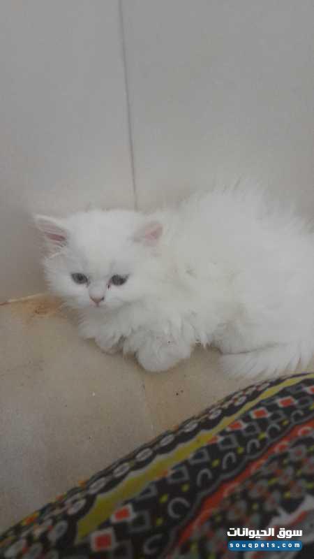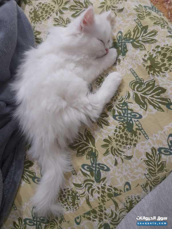 قطة شيرازية للبيع العمر شهرين و10 أيام قطة ثلجية وجميلة فعينان مختلفتان أزرق ورصاصي