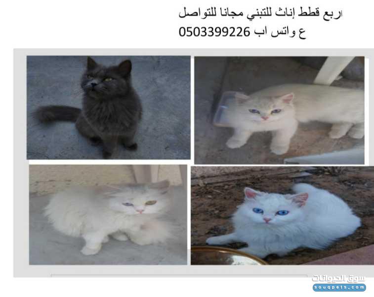 أربع قطط إناث للتبني
