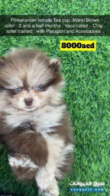 Pomeranian tea cup female 2 months for sale كلب بوميرانيان تي كب للبيع العمر شهرين انثى السعر قابل للتفاوض