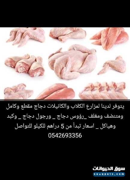 يتوفر لدينا لمزاع الكلاب و الكانيلات دجاج فريش مقطع وكامل متنضف و مغلق رؤوس دجاجرجول دجاج كبد ههياكل افخاد دجاج كامل باسعار بسيطه للتواصل 0542693356