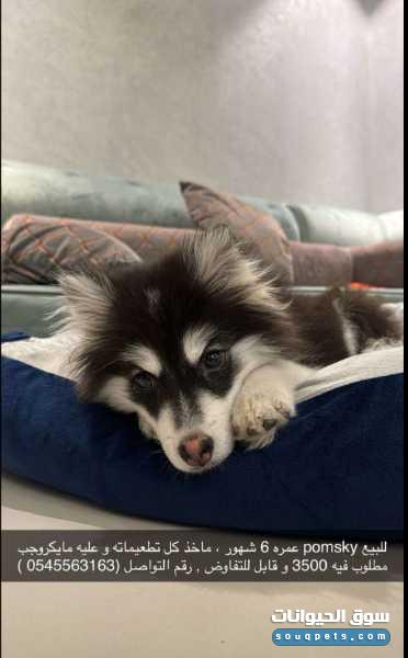 للبيع pomsky عمره 6 شهور ماخذ كل تطعيماته و عليه مايكروجب مطلوب فيه 3500 و قابل للتفاوض رقم التواصل 0545563163