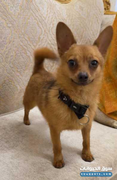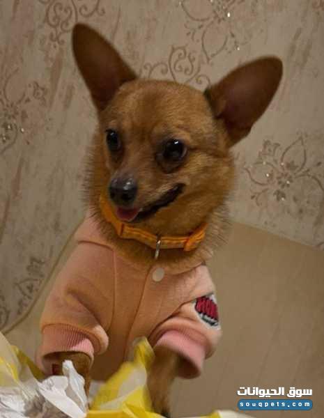 للبيع كلب شيواوا العمر سنه أليف ولعوب وفرفوش وهادي جدا نظيف ماخذ التطعيمات كل اسبوع شاور عند البيطري مايشكي من شي أبدا معاه البيت خاص فيه وجميع مستلزماته