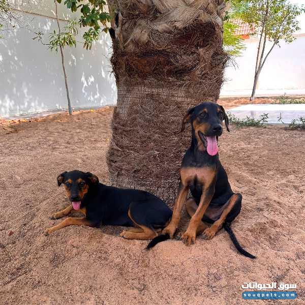كلبين للبيع عمر ٦ اشهر ذكر و انثي ميكس بيور الأب روت و الام دوبرمان مطعمين كل التطعيمات ناشطين و اذكياء جاهزين للتدريب