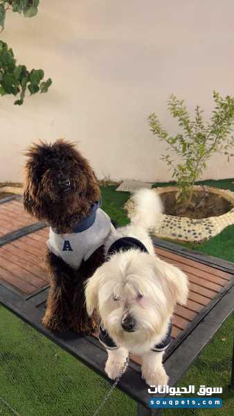 الابيض مالتيز عمره سنتين الاسود بودل عمره سنه مطعمين وياهم جوازاتهم متربين داخل البيت والليفين للبيع الاثنين ويا بعض ب 3000